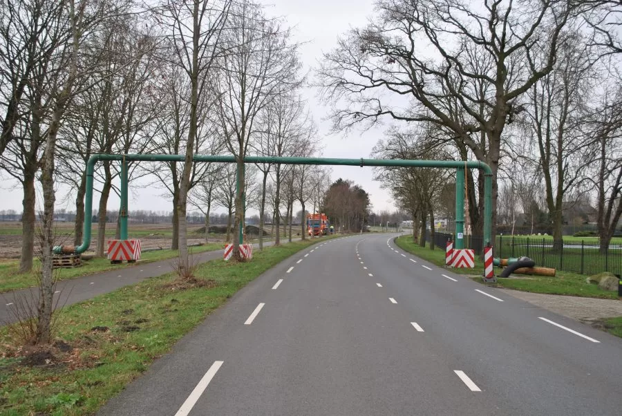 Relinen oder grabenlose Rohrsanierung ist eine Kanalrenovierungstechnik. Mit dieser Methode wird ein Abwasserkanal renoviert, ohne ihn tatsächlich aufzubrechen. Die Renovierung wird durchgeführt, indem der Kanal stückweise geschlossen und dieses Stück renoviert bzw. neu verlegt wird. Die Arbeit der Koop Wasserbau GmbH bestand darin, das Wasser aus dem geschlossenen Kanalstück umzupumpen. Dazu wurden vier Rohrbrücken installiert und ein 1300 m langes 12-Zoll-Abflussrohr aufgebaut. Mithilfe einer Dieselpumpe mit einer Leistung von 525 m³/h und einer Reservepumpe wurde eine Dauerleistung von 500 m³/h garantiert.