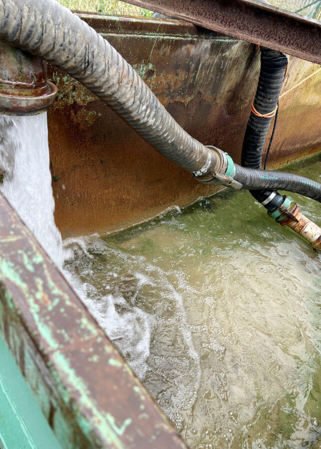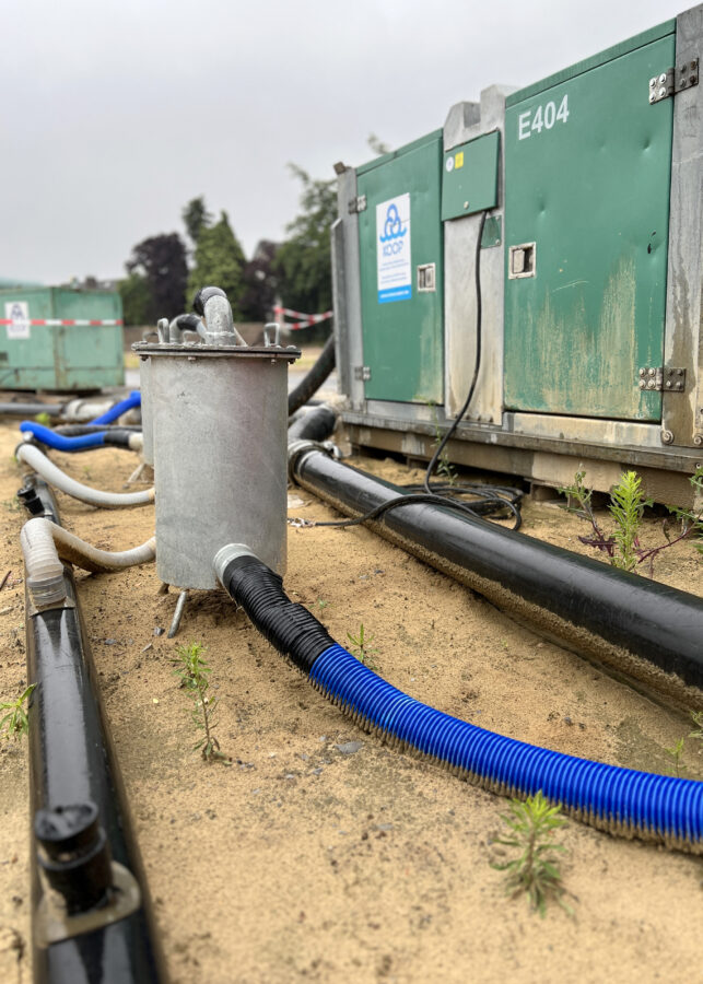 • Wasserableitung: Das abgepumpte Wasser wird mittels einer Druckerhöhungsanlage in einen 1.100 Meter entfernten Graben geleitet.