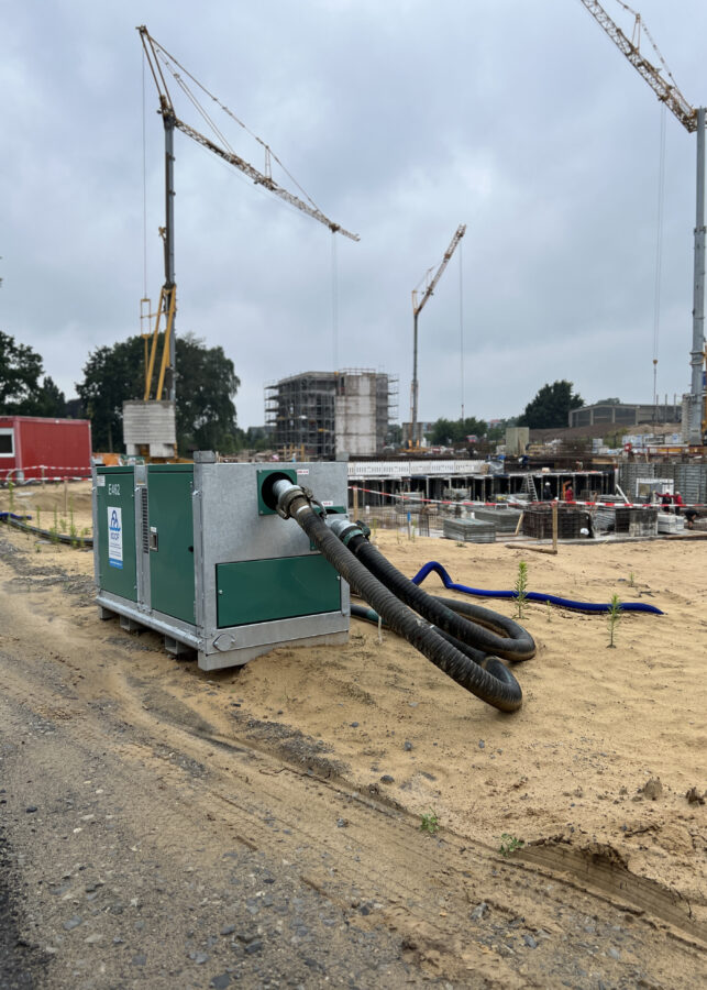 Für den Bau einer modernen Wohnanlage in Verl wurde eine umfassende Entwässerungslösung implementiert, um die Baugrube trocken zu halten und optimale Bedingungen für die Bauarbeiten zu schaffen.