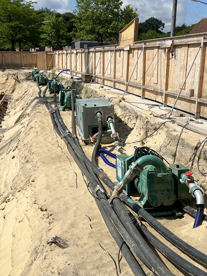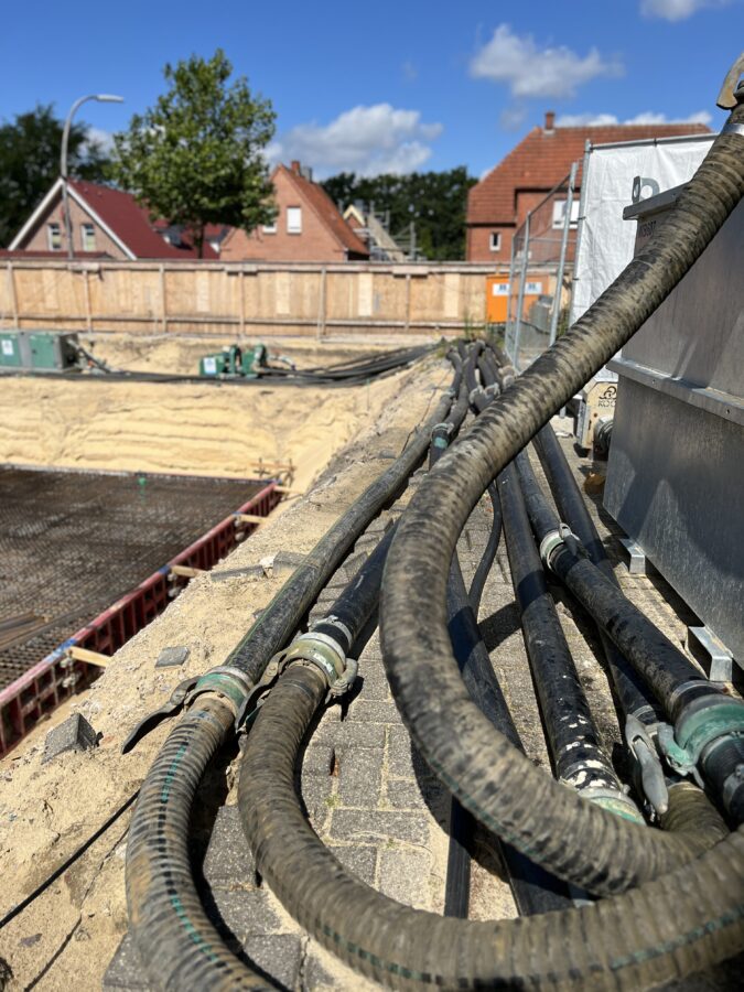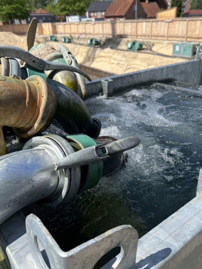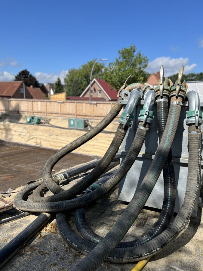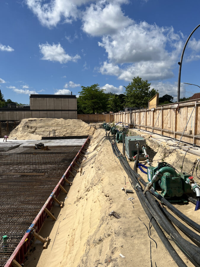• Einsatz von Vakuumpumpen: Zur weiteren Absenkung des Grundwasserspiegels wurden leistungsfähige Vakuumpumpen eingesetzt.