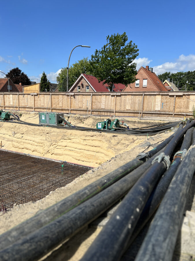 In der Waldstraße in Lingen entsteht das moderne Wohn- und Geschäftshaus “Lingia-Arkaden” mit 28 hochwertigen Stadtwohnungen und sechs Gewerbeeinheiten sowie einer großzügigen Tiefgarage. Koop Wasserbau übernahm in diesem Projekt eine zentrale Rolle bei der Planung und Umsetzung der notwendigen Wasserhaltungsmaßnahmen.