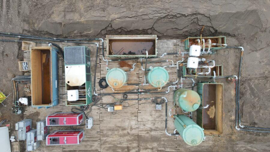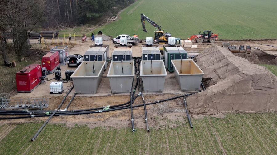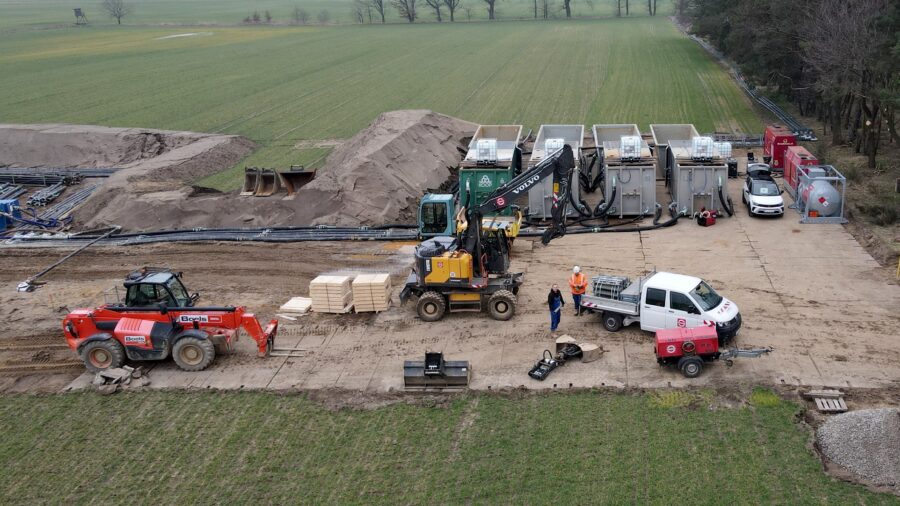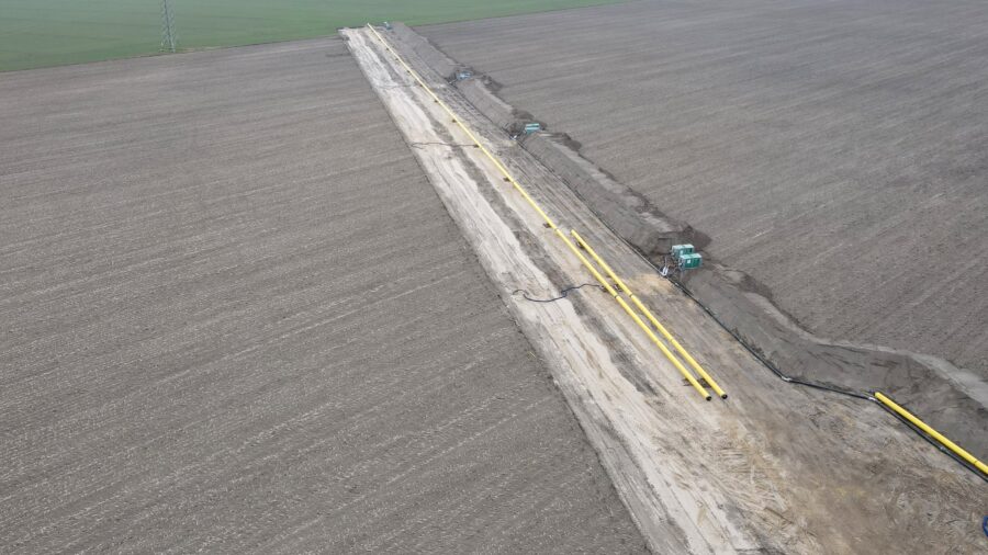 Für die Verlegung einen DN400 Rohrleitung ist eine umfangreiche Wasserhaltung über hauptsächlich Horizontaldrainage notwendig.